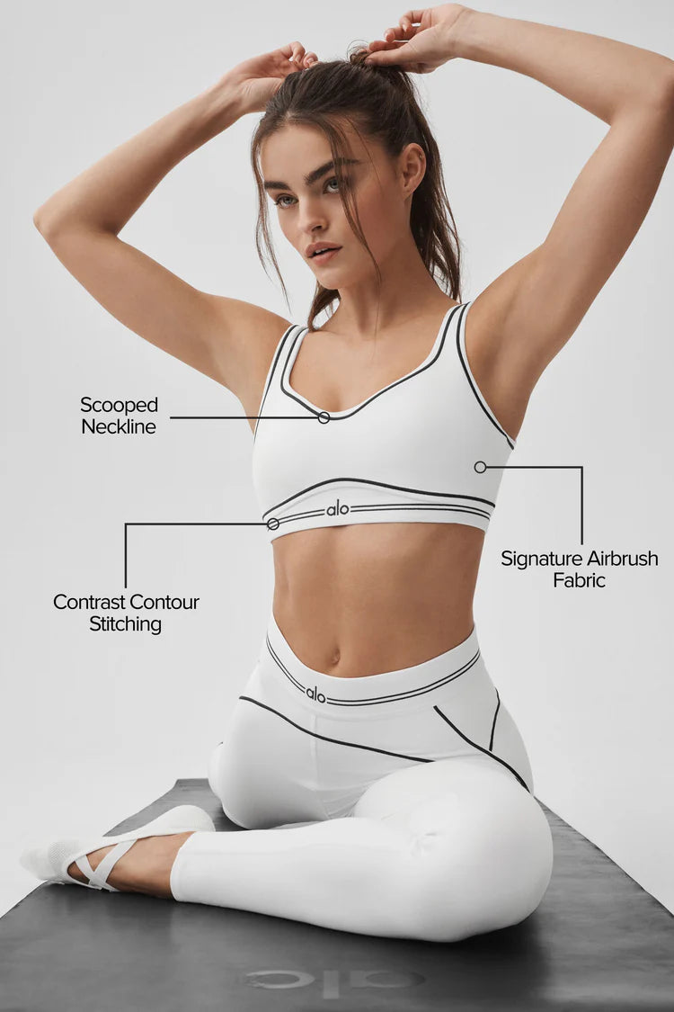 Way too cute to cover up. This bra features contrasting stitching, a gently-scooped neck and a low back, all done in our signature Airbrush fabric for a soft and comfortably compressive fit. It’s perfect for medium-intensity workouts like dance, yoga or Pilates, and even cuter with the matching Heart Throb Legging.